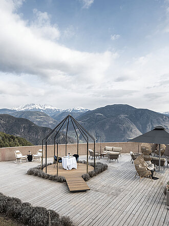 Die Anfahrt von Bozen ins Hotel Belvedere fühlt sich an, als würde man nach oben fliegen. Und beflügelnd ist die Aussicht.