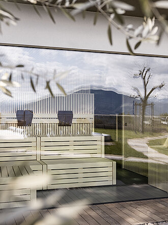 Geöffnet ab 13.00 Uhr heißt es in unseren vier Saunen schwitzen, reinigen, entschlacken und vor allem das Immunsystem stärken. Die Panorama-Außensauna mit Blick über Bozen, die Südtiroler Stubensauna, die Kräutersauna und das Dampfbad schenken tiefe Seelenruhe.
