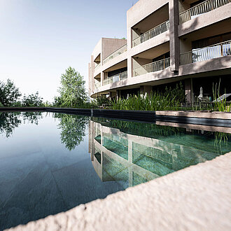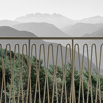 Vom Bozner Talkessel bis zu den Felsgiganten der Dolomiten: Aus beinahe jedem Winkel des Hideaway-Hotels in Südtirol erblicken Sie Weite, ob im Pool, in der Sauna, im Restaurant oder Zimmer.