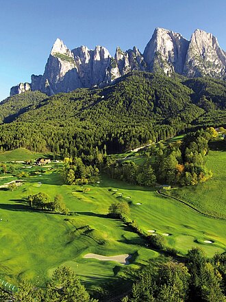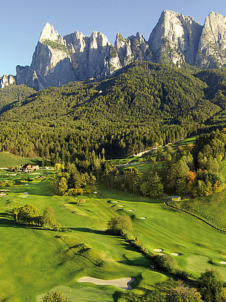 Ein beeindruckendes Dolomitenpanorama und große Höhenunterschiede sorgen für so viel Nervenkitzel auf dem Grün, wie man ihn nur hier erleben kann. Die Bahnen am Fuße des Schlerns schlängeln sich um Schluchten herum und an tosenden Wasserfällen vorbei. Die Fairways lassen Raum für lange Schläge und einfachere Löcher Zeit, um die Ausblicke zu bewundern.