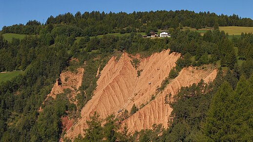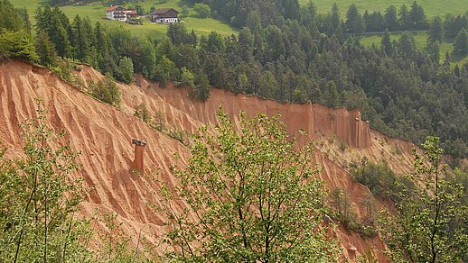 Nach der Einkehr geht es weiter in Richtung der Erdpyramiden, die in einer Wiese unterhalb des Locherer Hangs liegen und ein besonderes Naturphänomen darstellen.