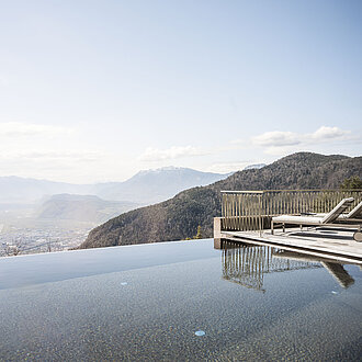 Naturbelassener Holzboden, luftige Raumhöhen und große Glasfronten: Im hellen Panorama-Yogaraum des Hotels wird das Drinnen zum Draußen. Zwischen den grünen Baumkronen erblicken Sie die felsigen Gipfel der Dolomiten. Es ist ein wunderbares Gefühl, bis zum Horizont zu schauen und mit sich selber Verbindung aufzunehmen. An warmen Tagen werden die Matten im Freien auf der Terrasse ausgerollt. Die frische Bergluft bringt Körper und Geist in Einklang und die wohltuende Weite schafft Raum für Balance.