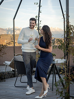 Auf der Suche nach einem besonderen Hotel für Paare in Südtirol? Seit Jahren dürfen wir auf unserer Loungeterrasse mit Blick über Bozen und die majestätischen Dolomiten unzählige Liebes- und Heiratsanträge begleiten – voller Magie und ganz großer Liebe.
