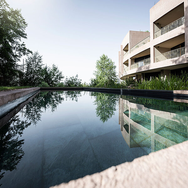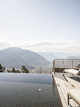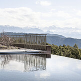 Sich ins Unendliche treiben lassen und dem Horizont entlangschwimmen: Im Hotel über Bozen mit Infinity Pool, Biopool und Outdoor-Whirlpool reichen Sekunden, um zur Leichtigkeit zurückzufinden.