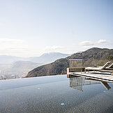 Ein spektakulärer Infinitypool, der das Gefühl vermittelt, direkt auf die Berggipfel zu schwimmen.