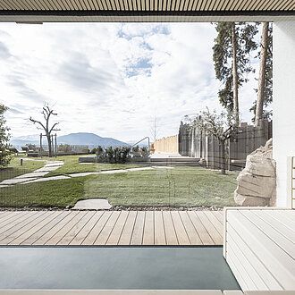 Wenn die Sonne Südtirols Süden verwöhnt, finden Sie im Biopool inmitten des Genussgartens Erfrischung. Das auf 20 bis 22 °C beheizte Nass hat beste Trinkwasserqualität. Für ein natürliches Wassergefühl auf Ihrer Haut, ganz ohne Chlor und andere Chemikalien. Ziehen Sie Ihre Bahnen zwischen den Seerosen. Genießen Sie auf der Liegewiese rund um den Naturteich die paradiesische Atmosphäre und Ruhe am Wald. Bunt schimmernde Libellen und fröhlich zwitschernde Vögel leisten Ihnen Gesellschaft.