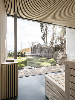 Die Aussichtsreiche: Panorama-Außensauna mit Blick auf Bozen