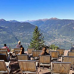 Der Blick von hier oben über die Stadt und auf die Dolomiten lässt sich in Bildern nicht festhalten.