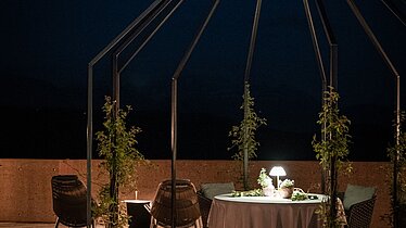 Überraschen Sie Ihren Partner mit einem 5-Gänge-Gourmetmenü in unserem einzigartigen Sky Pavillon – der perfekte Ort für einen unvergesslichen Abend unter den Sternen.