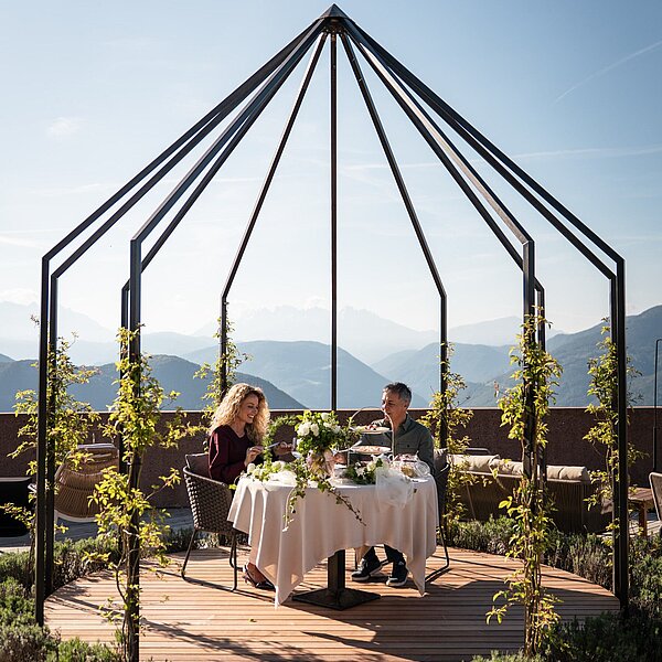 Im Sky Pavillon erwartet Sie ein ganz besonderes Erlebnis – exklusiv, ruhig und mit einem atemberaubenden Blick auf die Dolomiten. Genießen Sie in privater Atmosphäre ein liebevoll zusammengestelltes Frühstück für zwei, begleitet von einem Glas Südtiroler Sekts. Während die Morgensonne die Berge in goldenes Licht taucht, serviert Ihnen unser aufmerksames Team das Frühstück direkt an den Tisch – entspannt, persönlich, unvergesslich.