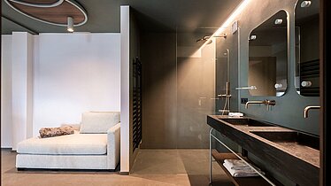Je nach Suite genießen Sie zusätzlich einen abtrennbaren Wohn und Schlafbereich, der noch mehr Privatsphäre und Flexibilität schafft. Großzügige Fensterfronten öffnen den Raum zu beeindruckenden Ausblicken auf die Naturlandschaft der Dolomiten oder das weite Bozner Becken und lassen Innen und Außen auf harmonische Weise miteinander verschmelzen.