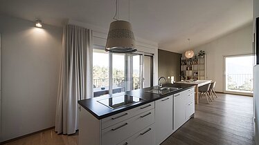Dai balconi si ha una vista verso le Dolomiti. Per gli ospiti che non sono direttamente integrati nell'hotel ma che vogliono comunque godere di tutti i servizi dell'hotel.