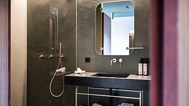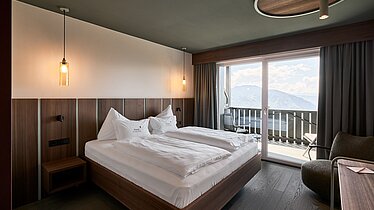 Le nostre camere Panorama catturano in modo speciale le diverse prospettive del paesaggio naturale circostante delle Dolomiti o del bacino di Bolzano. Il design moderno e l’atmosfera rilassata si fondono con il fascino autentico della casa madre, ristrutturata con cura e rispetto per la tradizione. Grazie al legno di noce pregiato, ai lavabi in pietra, ai pavimenti di alta qualità, e all’armonioso abbinamento di colori e tessuti, combinano il lusso rilassato con l'eleganza naturale in un design minimalista senza tempo.
