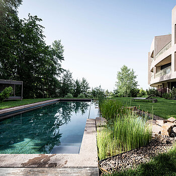 Se preferisci un’esperienza più naturale, l’Hotel Belvedere offre anche un laghetto naturale. Nella Biopool, l’acqua è pura e non trattata, di qualità potabile. Senza l'uso di additivi chimici, offre una sensazione di nuoto particolarmente delicata e salutare. Immersa nel giardino ai confini del bosco, la Biopool invita a ritrovare l'armonia con la natura. È il luogo perfetto per rigenerarsi dopo una escursione sull’altopiano del Salto o per un momento di relax post-yoga, offrendo una sensazione di benessere profondo per corpo e mente.
